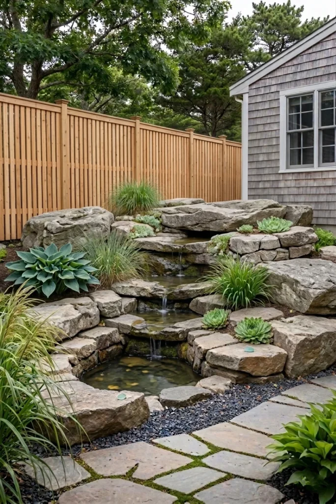 Our custom waterfalls add a peaceful, eye-catching focal point to your landscape, built with expert craftsmanship to thrive in Cape Cod’s coastal environment.